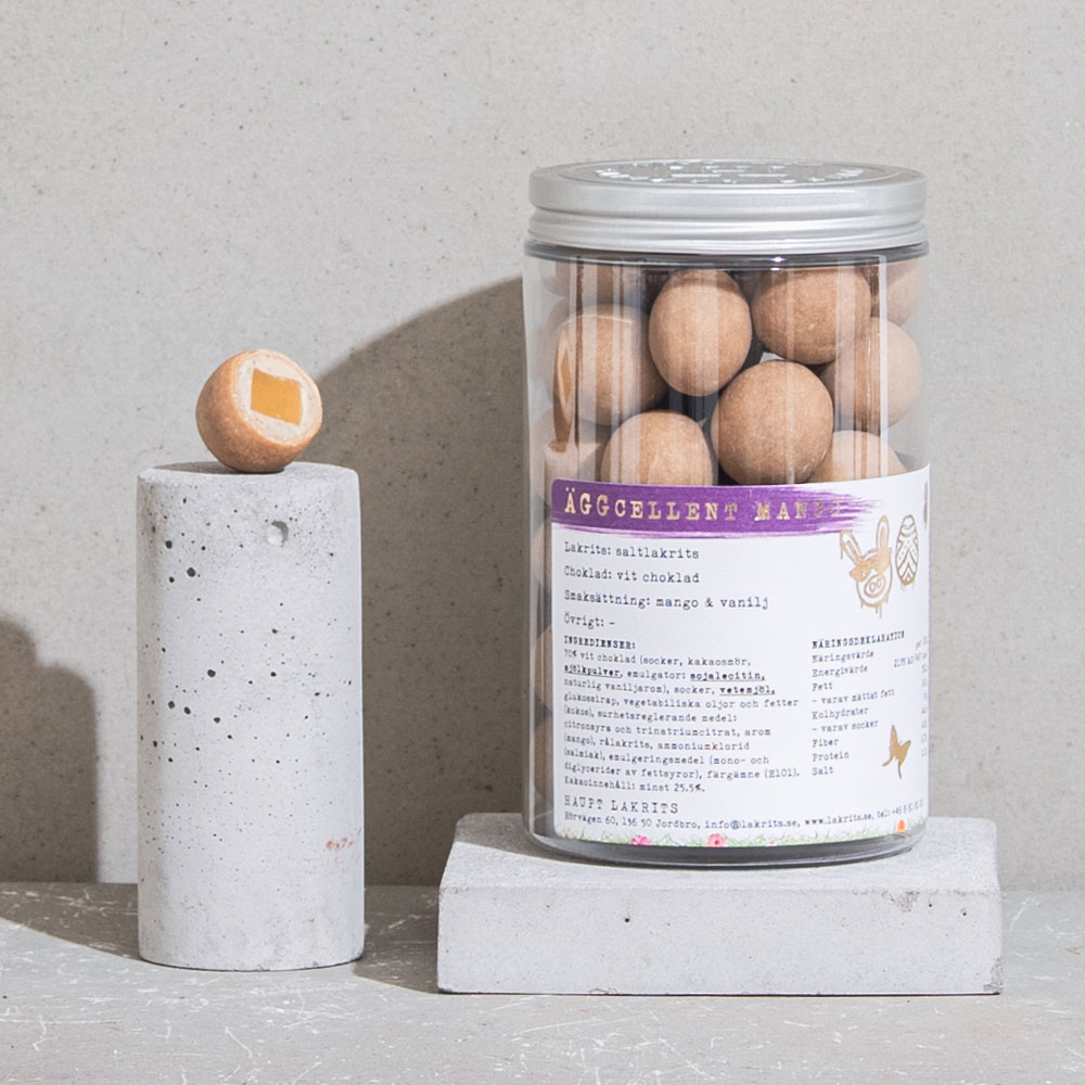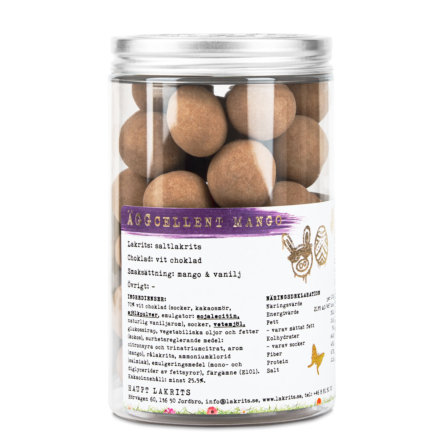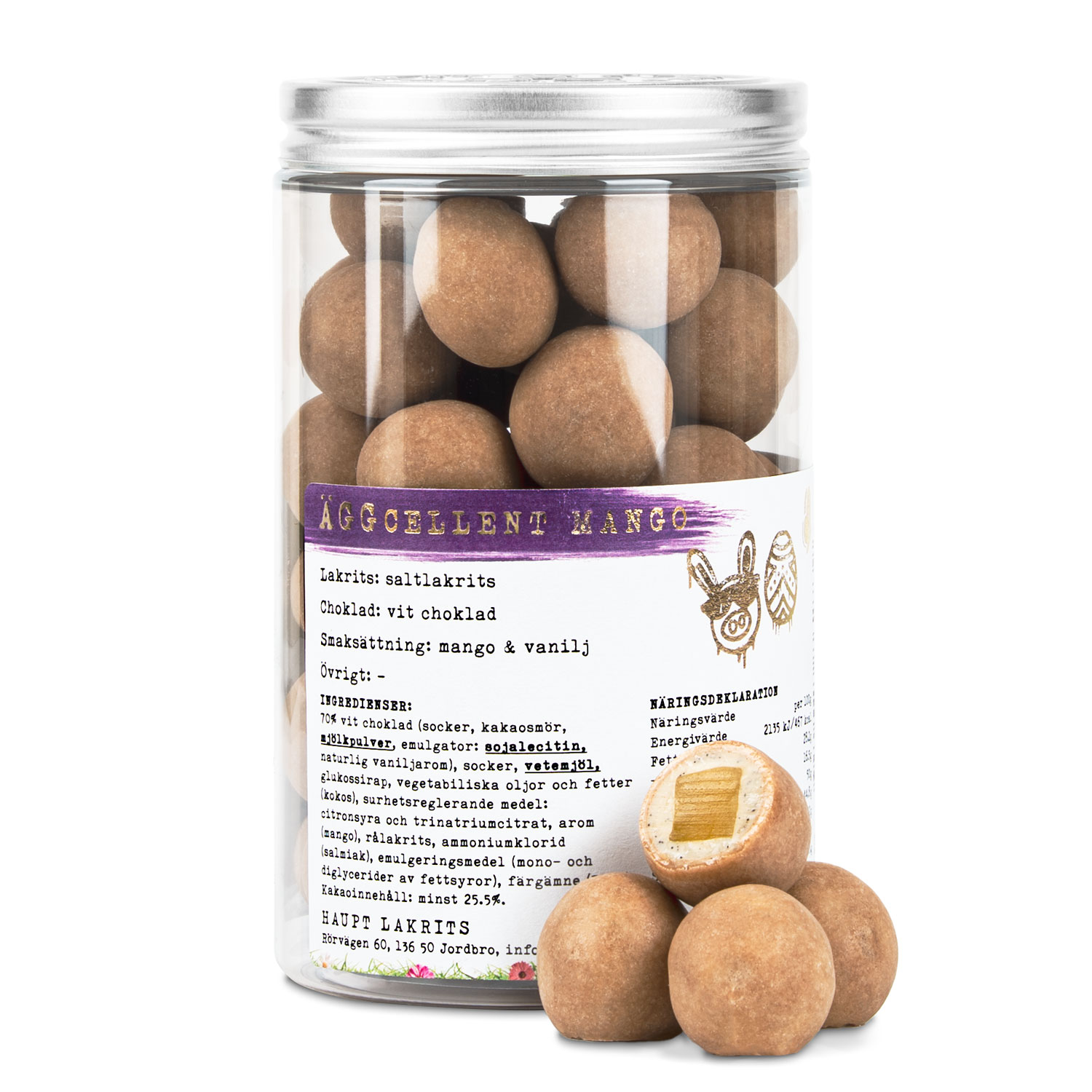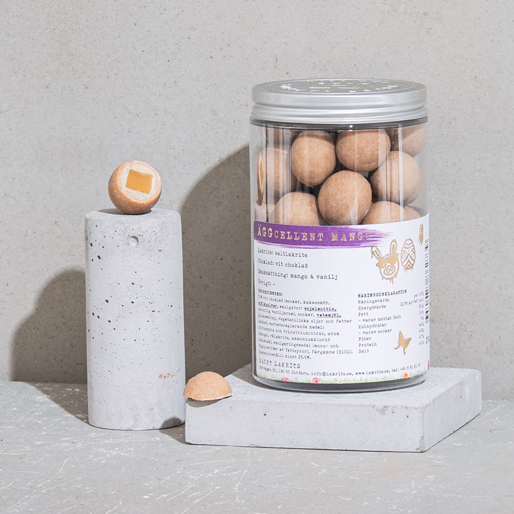 Eins nach dem anderen und doch alles auf einmal! Hier muss man sich schichtweise durchgenießen, um am Ende das volle Geschmackserlebnis genießen zu können. Eine cremige Schicht aus weißer Schokolade mit Vanillegeschmack hat sich nämlich in Schale geschmissen – und diese besteht aus knackigem gesalzenen Lakritz. Für den frisch-fruchtigen Abschluss sorgt das im Zentrum eingebettete süß-saure Mango-Stückchen – einfach äggcellent. Und vor allem: Limitiert! Von dieser sauer-süß-salzigen Versuchung wurde nur eine Charge produziert und wird nicht nachproduziert!